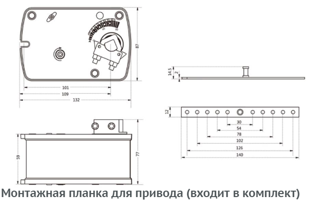 Габаритные характеристики привода воздушного клапана