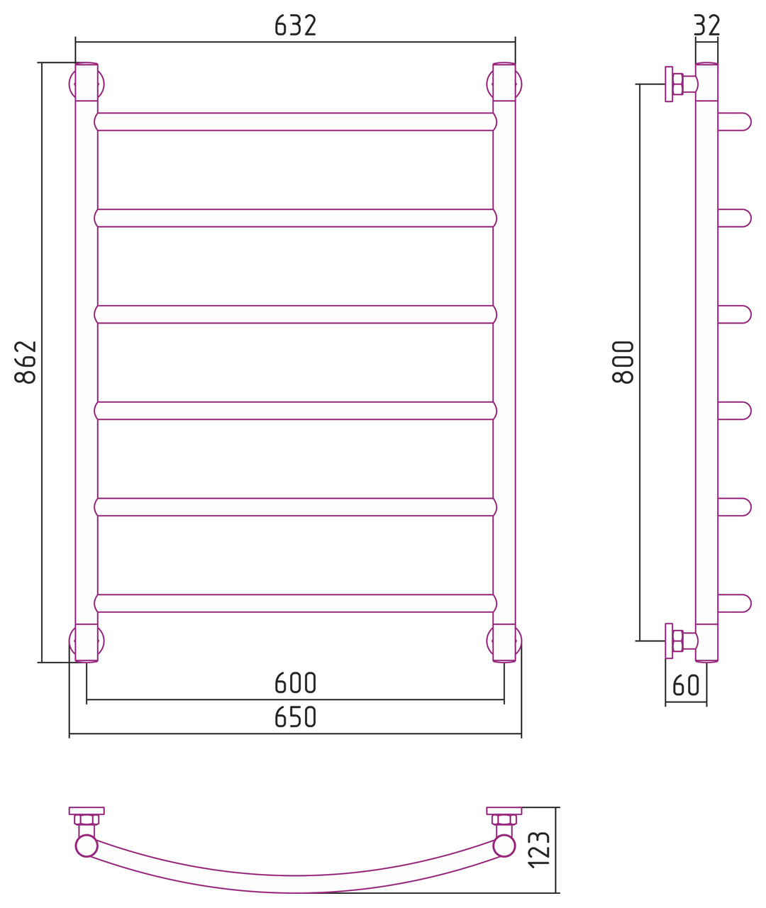 Внешние габариты (высота х ширина х глубина) (мм) : 862х650x123
